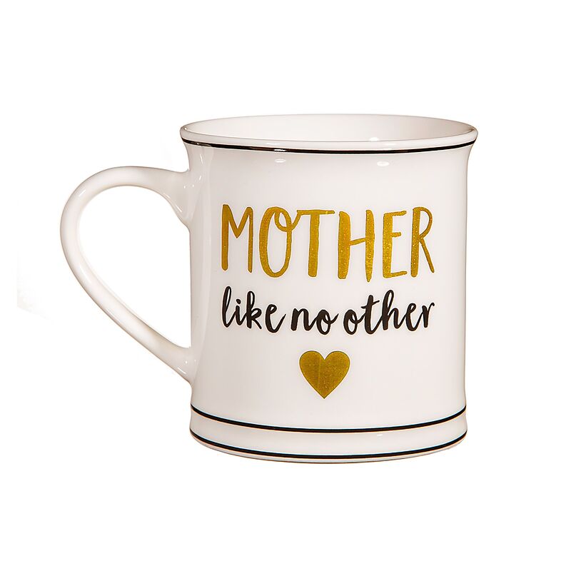 Hergestellt aus Keramik, um eine klassische Becherform zu schaffen. Mit einer Farbkombination aus Weiß, Schwarz und Gold und dem Spruch "Mother like no other". Ein wunderbares und erschwingliches Geschenk oder eine großartige Ergänzung zu Ihrer Sammlung von Kü...