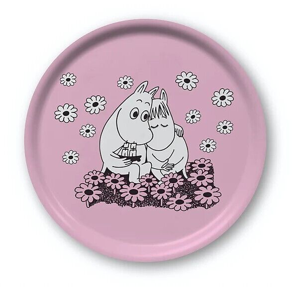 Ein rundes Tablett mit einem Durchmesser von Ø 31 cm, mit einem wunderschönen Motiv, inspiriert von Tove Janssons Originalzeichnungen. Es ist von hoher Qualität und wird in Schweden aus Birkenholz handgefertigt. Spülmaschinenfest. Ein Motiv, inspiriert von Tov...
