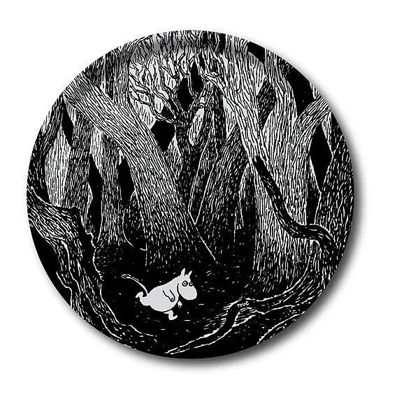 Ein rundes Tablett mit einem Durchmesser von Ø 31 cm, mit einem wunderschönen Motiv, inspiriert von Tove Janssons Originalzeichnungen. Es ist von hoher Qualität und wird in Schweden aus Birkenholz handgefertigt. Spülmaschinenfest. Ein Motiv, inspiriert von Tov...
