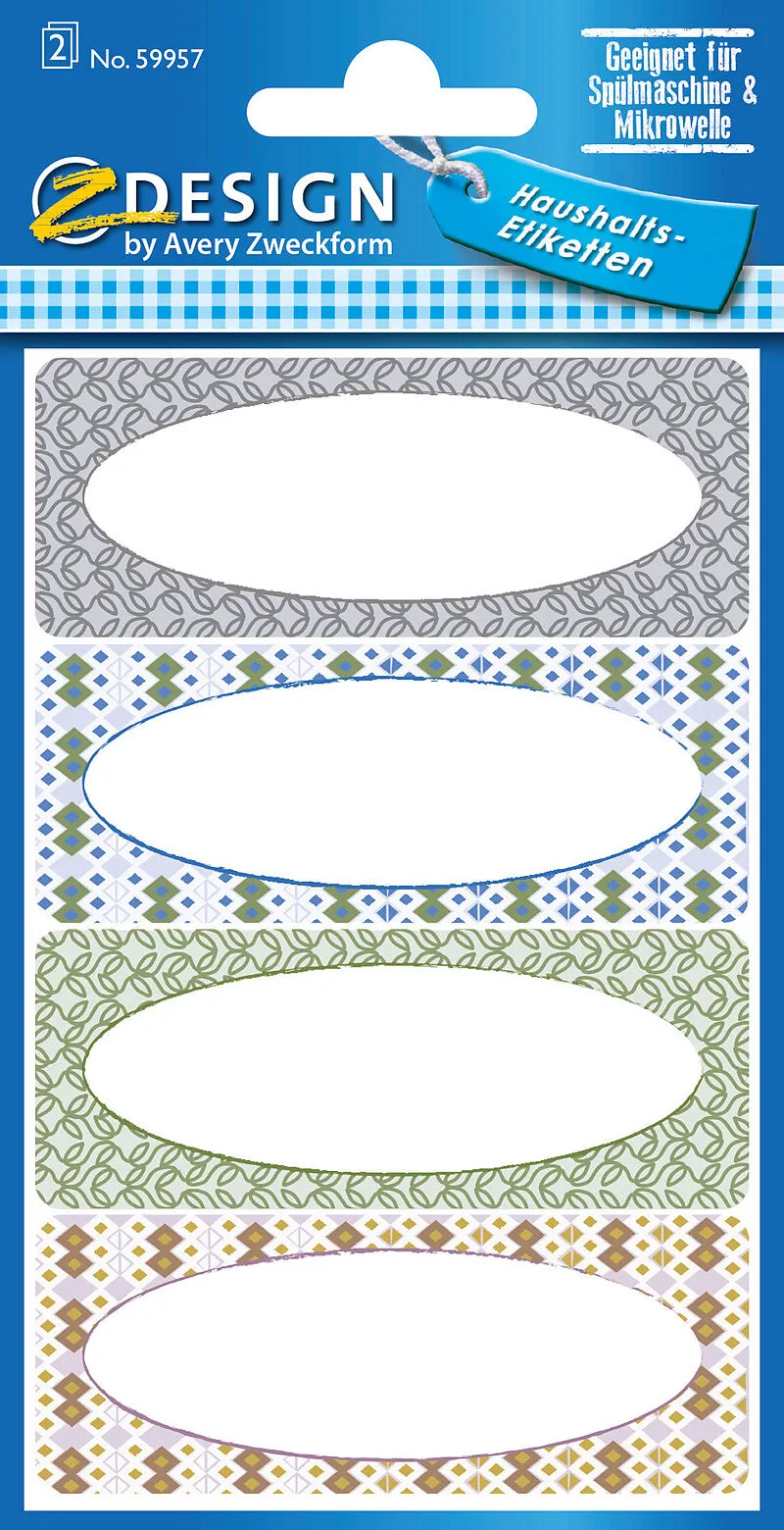 Permanent haftende Etiketten aus beschriftbarer Folie. Zum Kennzeichnen von Vorräten. Spülmaschinen- und mikrowellengeeignet. Mit Permanent Marker beschriftbar. Inhalt: 8 Etiketten / 2 Bogen Sticker-Verpackungsgrösse: 16 x 9 cm