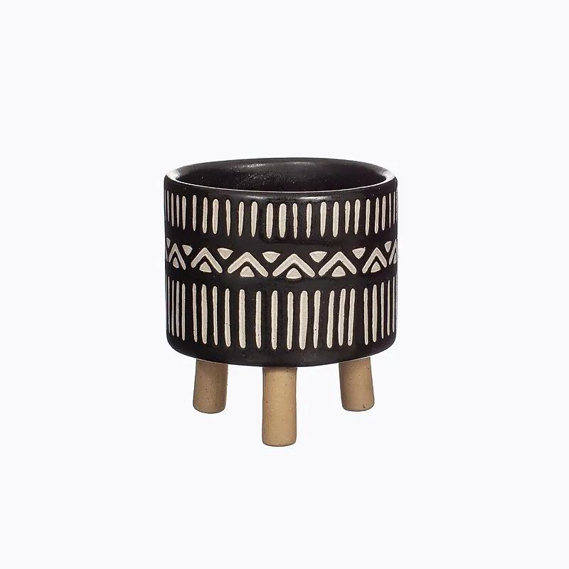 Frisch, funktional und perfekt für die Schaffung eines Indoor- Ökosystems mit Stil und böhmischer Ästhetik. Weisse Geodrucke treffen auf eine mattschwarze Basis und ergänzen jedes Haus botanical. Dieser Mini-Blumentopf mit langen Beinen ist ein Match, das im G...