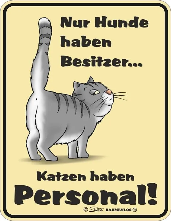 Nur Hunde haben Besitzer...Katzen haben Personal! Blechschild im Format 17 x 22cm aus rostfreiem Aluminium.