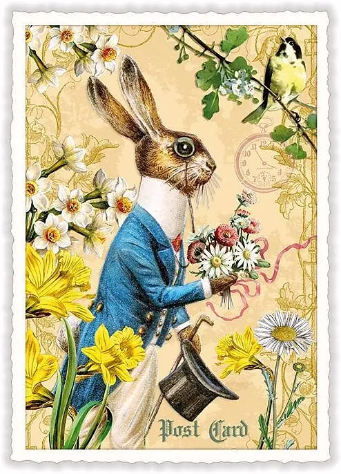 Ostern Blumenstrauss Hase Postkarte