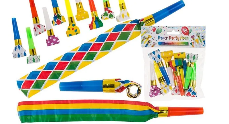 Papier-Tröte für tolle Partystimmung,dröhnt laut! Lieferumfang: 10 Stck in einem Beutel Achtung: Nicht für Kinder unter 3 Jahren geeignet. Erstickungsgefahr aufgrund verschluckbarer Kleinteile.