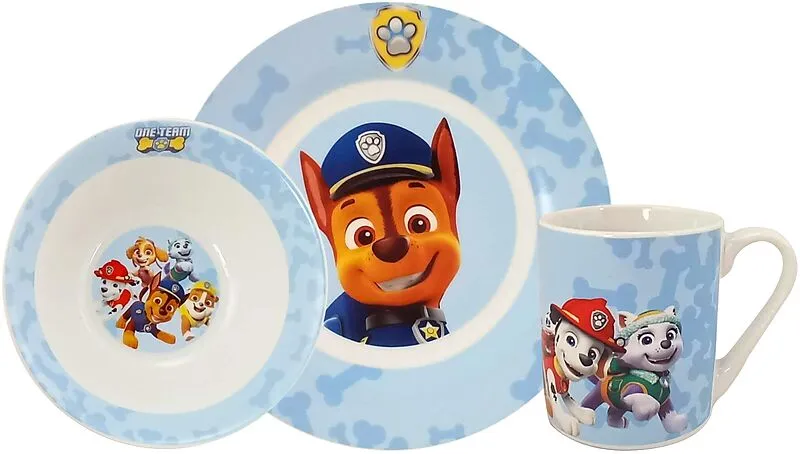Mit diesem coolen Paw Patrol Set erhältst du alles was du für dein nächstes Frühstück brauchst. In dem Set enthalten sind 1 Schale, 1 Teller und 1 Tasse. Lass dir dein Frühstück auf diesem ganz besonderen Geschirr richtig gut schmecken.