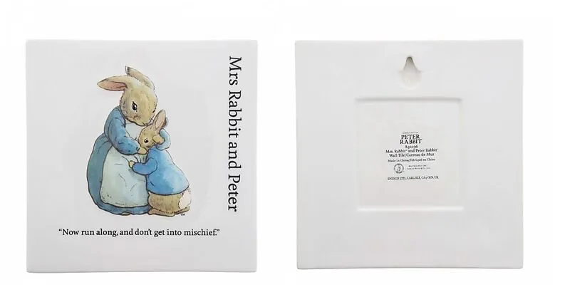 Verleihen Sie Ihrem Zimmer einen Hauch von Peter Rabbit mit dieser wunderschönen dekorativen Wandtafel von Mrs. Rabbit und Peter. Diese sind ein ganz besonderes Geschenk.