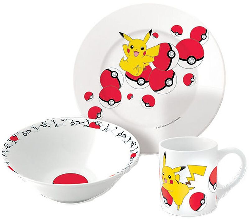 Mit diesem coolen Pokémon Set erhältst du alles was du für dein nächstes Frühstück brauchst. In dem Set enthalten sind 1 Schale, 1 Teller und 1 Tasse. Lass dir dein Frühstück auf diesem ganz besonderen Geschirr richtig gut schmecken.