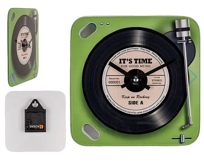 Plattenspieler Glas-Wanduhr 20x20 cm