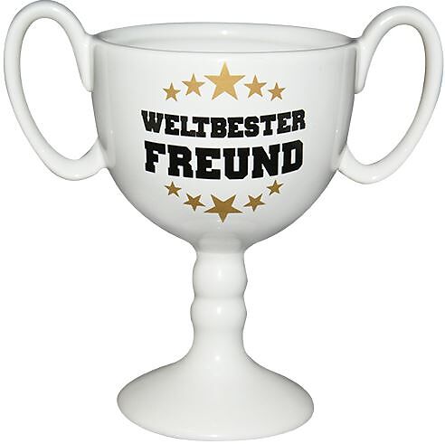 Maße: ca. 12 x 13 x 8 cm Farbe: weiß, Material: Keramik Die Pokaltasse, die nicht nur ein Accessoire für den Beschenkten ist, sondern auch als Kaffeebecher Verwendung findet. Lebensmittelecht.