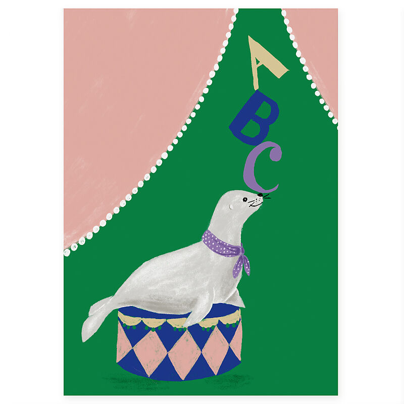 Postkarte auf stabiler Holzschliffpappe gedruckt mit wunderschön illustriertem Motiv. 14,8 ¬ 10,5 ¬ 0,1 cm Mach den Schulanfang noch besonderer mit der "ABC" Postkarte! Diese niedliche Karte zeigt eine Robbe, die die ABC-Buchstaben jongliert und auf einem Trap...