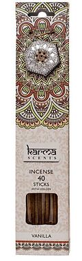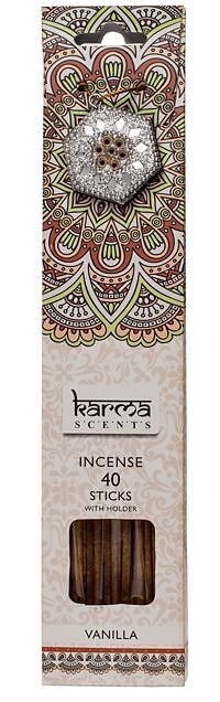 mit schönem Karma-Tisch-Dekohalter zum Einstecken von 7 Stäbchen. Für entspannende spirituelle Momente. Lass deine Seele baumeln und geniesse das "jetzt" mit diesem magischen feinen Vanille-Duft. Lieferumfang: 40 Räucherstäbchen mit einem Karma- Stäbchenhalter...