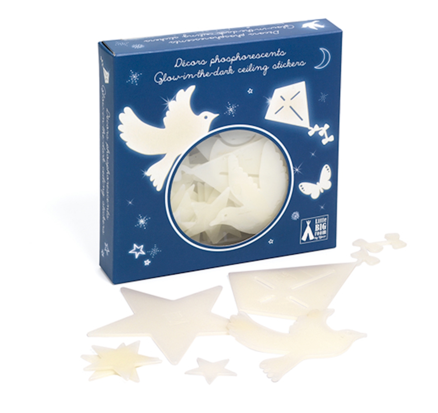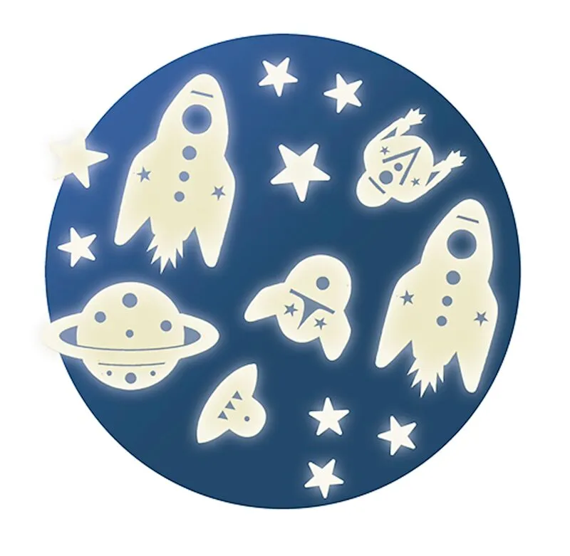 Aus Kunstoff. Doppelseitige Klebefläche aus Schaumstoff. 62 Stück. Die Leuchtdeko speichert am Tag das vorhandene Licht, welches sie dann in der Nacht zum Leuchten bringt.