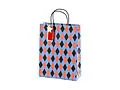 Geschenktasche Rauten Farbenmix und 2 Anhänger, Maße ohne Griffe ca. 10 x 24 x 32 cm.