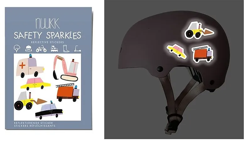 Safety Sparkles Für mehr Sicherheit auf der Straße Unsere bunten reflektierenden Sticker machen die Kleinen gut sichtbar für Autofahrer. Einfach an Fahrradhelmen, Rucksäcken, Fahrrädern, oder Gummistiefeln anbringen. wetterfeste Outdoorfolie (Scheinwerfer-)lic...