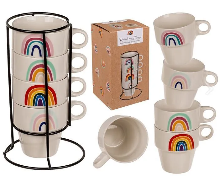 Regenbogen-Tassen 4 Stck stapelbar im Metallständer,