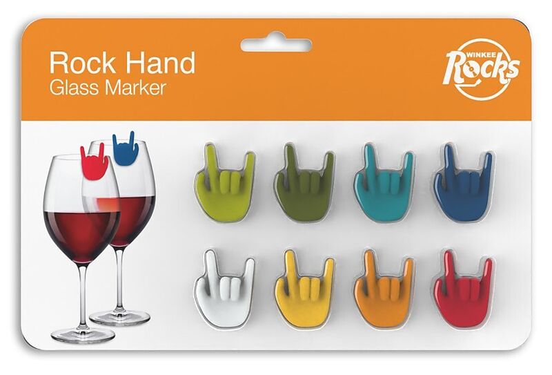 Inhalt: 8 Stück Markiere die Gläser mit diesen bunten Rock Händen Die Gäste werden begeistert sein! Material: Silikon 20 x 13 x 0,7 cm