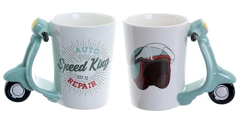 weiß, handbemalt, 100% Keramik, Fassungsvermögen ca. 470 ml. Absolut coole Tasse mit 3D Henkel in Form eines blau/ türkisenen Rollers. Auf dem weißen Kaffeebecher befindet sich ein Logo -Speed King Auto Repair. Die Tasse darf in keinem Schrank fehlen. Besonder...
