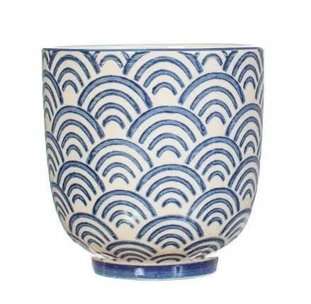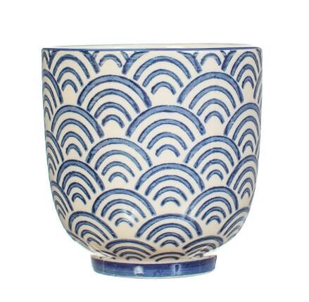 Der Becher bietet den Sashiko-inspirierten Druck in traditionellen Blautönen. Teil der Japandi-Kollektion, die eine Mischung aus traditionellem japanischen Minimalismus und skandinavischem Dekor vereint. 7 x 7 x 7 cm Material: Kaolin (Porzellanton) nicht Spülm...