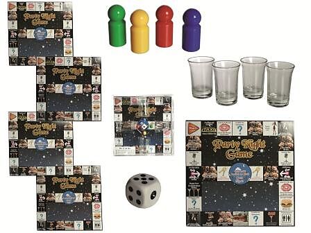 mit 4 Gläsern, 1 Würfel und 4 Spielfiguren