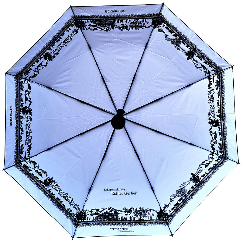Hochwertiger Taschenschirm kompakt und windsicher Aussenfarbe schwarz und innen mit einem traditionellen Motiv ausgestattet Auf und zu Automatik Schirmhülle mit dazu passendem Motiv