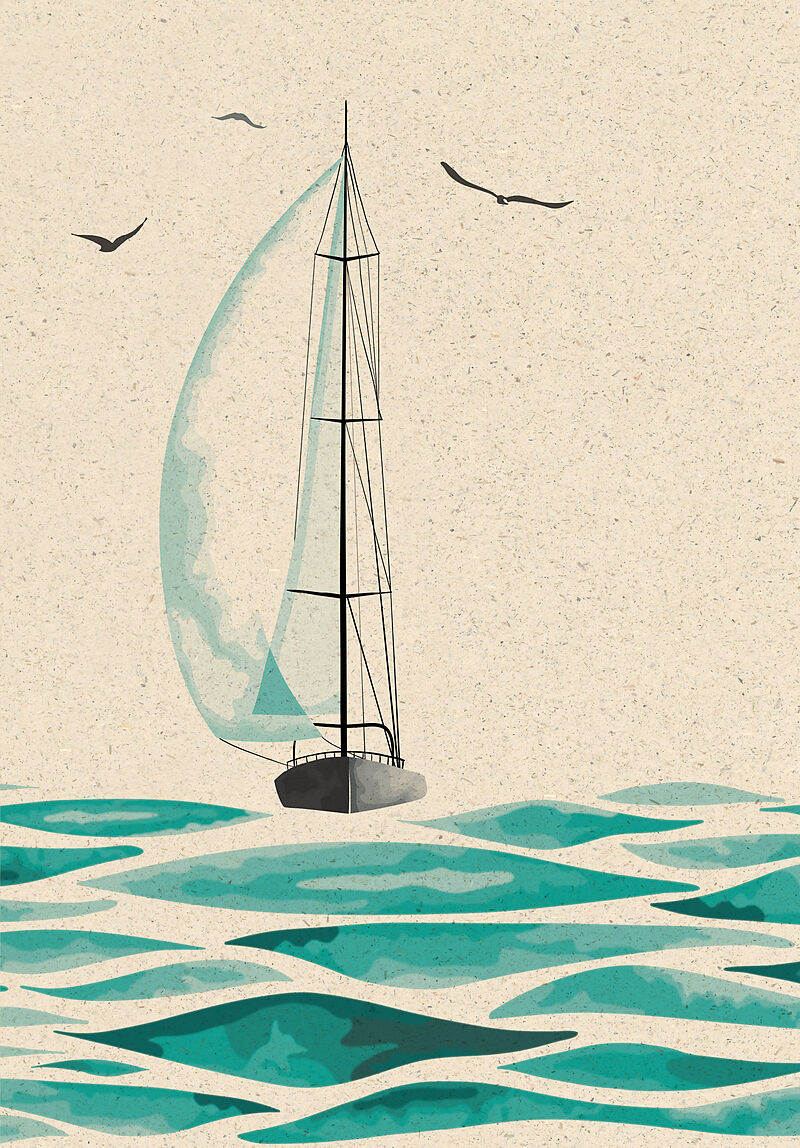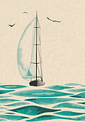Schiff Doppelkarte aus Graspapier 12,2 x 17,5 cm