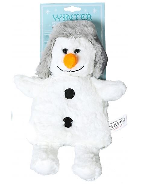 Grösse: 30cm Der Schneemann ist mit einem Weizenkissen gefüllt. Das Weizenkissen herausnehmen und in der Mikrowelle erwärmen.