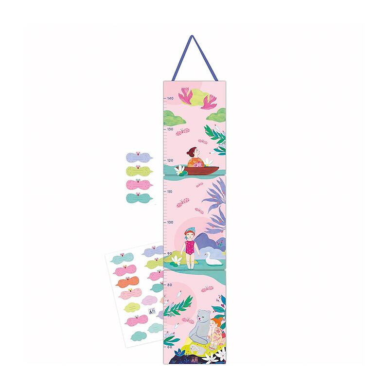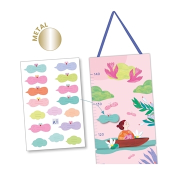 Messlatte mit einer Skala von 60cm bis 1.40m. 90x20cm Aus Karton Buntes Band zum Aufhängen 1 Bogen mit wiederverwendbaren Stickern. 30x20cm Schachtel mit anpassbarem Deckel zum Aufbewahren. 22x32x2.5cm Bezaubernde Messlatte, um das Wachstum der Kinder über die...