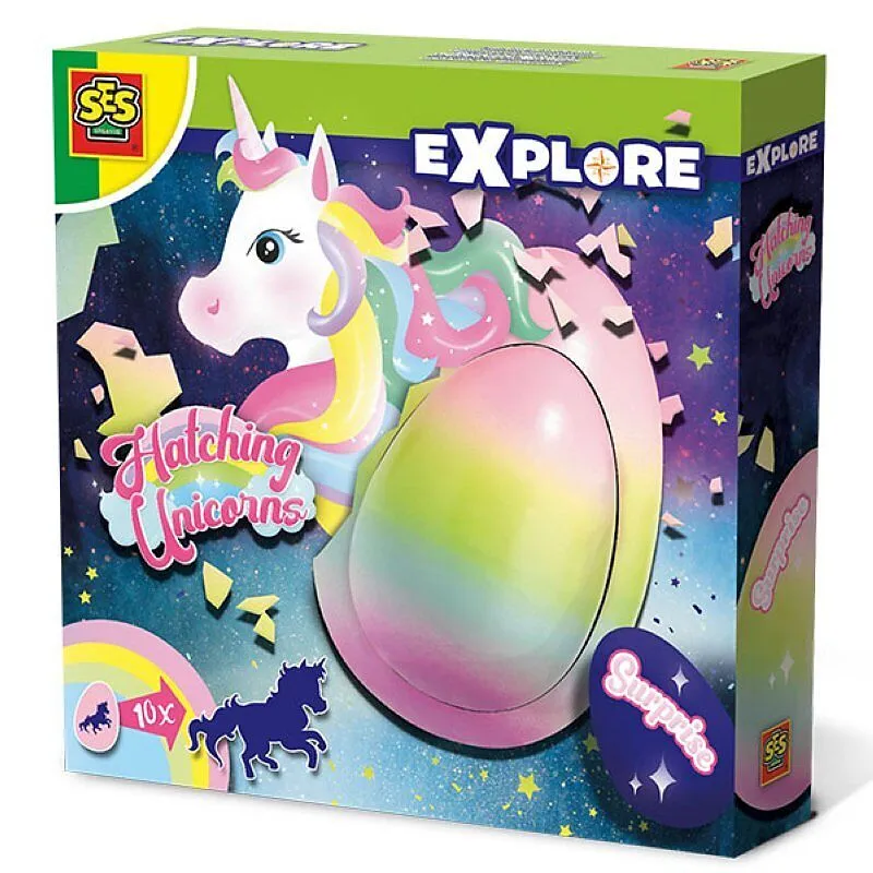 Dieses Set von SES Creative lässt die Herzen aller Einhorn-Fans höherschlagen. Neugierig, wie ein Einhorn-Baby eigentlich schlüpft' Na, dann aufgepasst: Zunächst einfach das Ei in Wasser legen und abwarten. Die Einhorn-Figur saugt sich nun mit Wasser voll, wir...