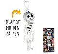 mit Horror-Effekt, denn nach dem Aufziehen klappert sein Gebiss unheimlich mit den Zähnen ! Hühnerhaut garantiert! - Ideal zu Halloween / Fasching - Zähne klappern automatisch durch Ziehen der Schnur - inkl. Karabiner - Material: Kunststoff - Maße Skelett: ca....