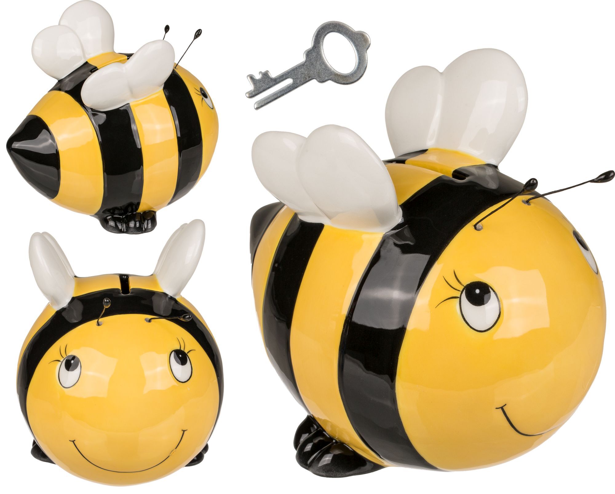 Spardose Biene mit Schloss aus Keramik. Groesse 15 x 13cm