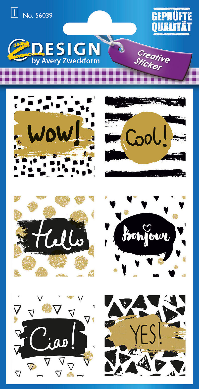 farbenfrohe Papier Stickers mit Goldprägung Inhalt: 1 Bogen Sticker-Verpackungsgrösse: 16 x 8 cm