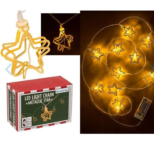 3D-LED-Lichterkette,Metallic Stars, mit 10 LED, mit Timer-Funktion, 2 x Mignon (AA) Batterien erforderlich
