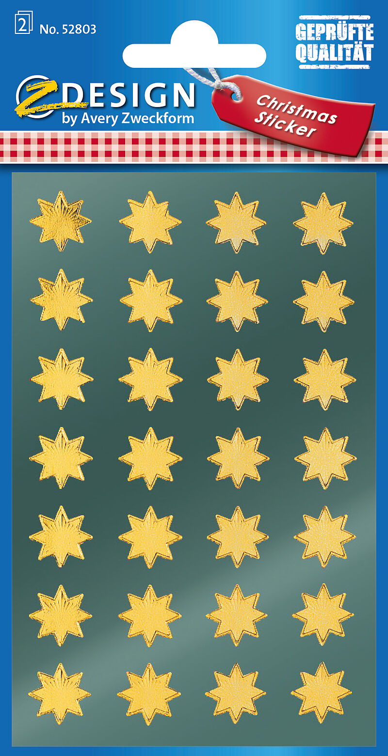 Festliche Stern-Sticker aus hochwertigem Goldmaterial Inhalt: 56 Stickers Sticker-Verpackungsgrösse: 16 x 8 cm