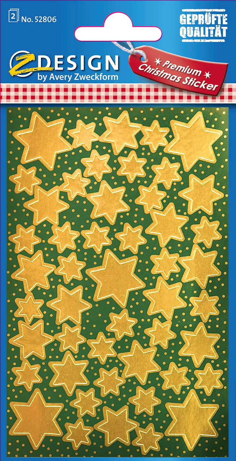 Festliche Stern-Sticker aus hochwertigem GoldmaterialInhalt: 96 StickersSticker-Verpackungsgrösse: 16 x 8 cm