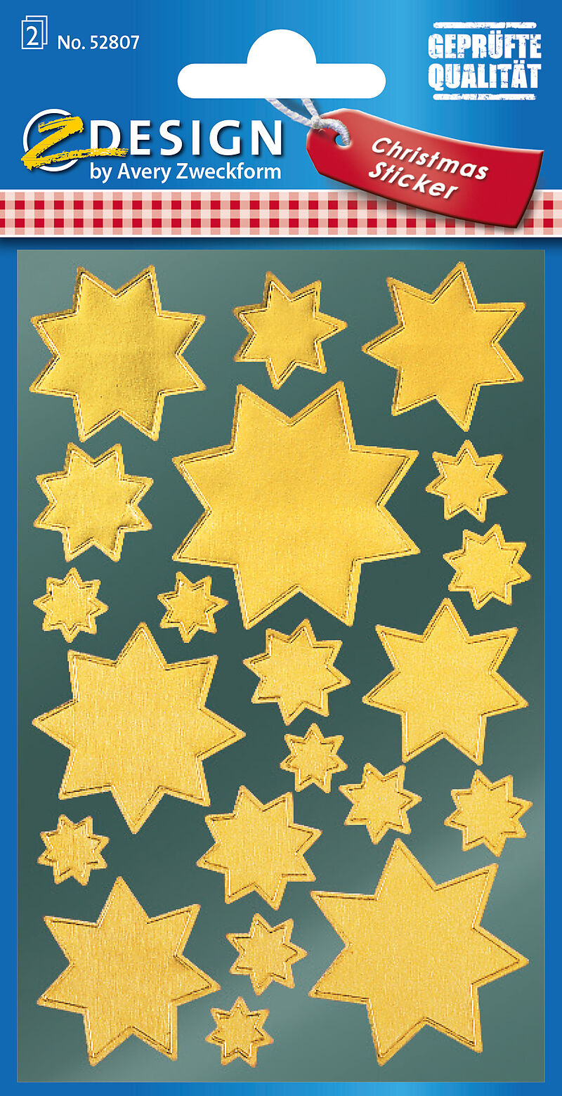 Festliche Stern-Sticker aus hochwertigem Goldmaterial Inhalt: 42 Stickers Sticker-Verpackungsgrösse: 16 x 8 cm