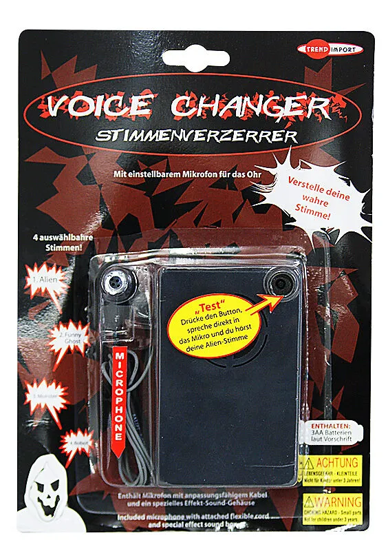 Verstelle auf Knopfdruck deine Stimme und du tönst wie Alien,ein Monster,ein lustiges Gespenst oder ein Roboter. Einfach ins eingebaute Mikrophon sprechen.