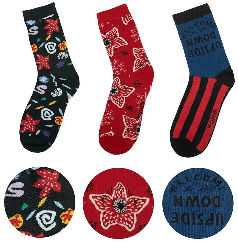 Mach einen Spaziergang auf der dunklen Seite mit unserem Set aus drei Stranger Things-Socken, perfekt für alle, die sich nach Abenteuern sehnen. Die seltsam faszinierenden Socken in Schwarz, Rot oder Blau wecken ein Gefühl von rätselhaftem Staunen. Diese hohen...