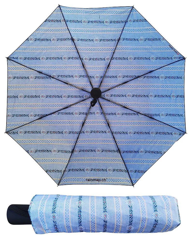 Hochwertiger Taschenschirm kompakt und windsicher Aussenfarbe schwarz und innen mit einem traditionellen Motiv ausgestattet Auf und zu Automatik Schirmhülle mit dazu passendem Motiv