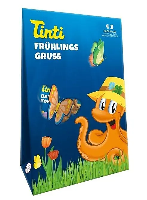 Hallo Frühling - jetzt wird geplantscht! Zwei Bade Fizzer in Schmetterling-Form färben das Wasser jeweils grün oder orange. Zudem sorgen der Knisterzauber und das Badekonfetti (bunte Blumen und Kleeblätter) für großen Badespaß. Besonders abenteuerlich wird es ...