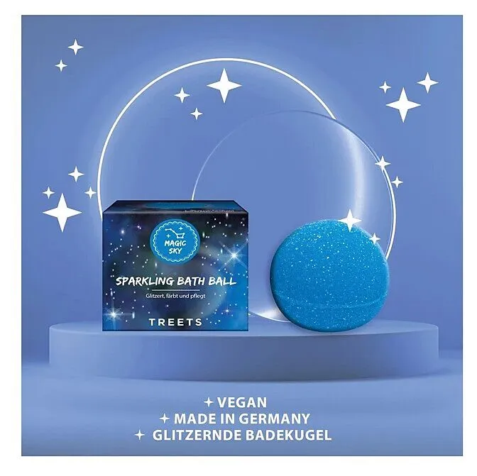 Die magische Badekugel "Magic Sky" zaubert unglaublich funkelndes Wasser in die Badewanne, leuchtendes blau mit schimmerndem Glitzereffekt. Die Badekugel entfaltet einen angenehm würzigen Duft. Sanft und pflegend zur Haut, Ohne Nanopartikel, Ohne Paraffine, Oh...