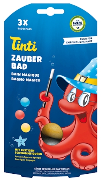Bei diesem Badeerlebnis werden selbst die Kleinsten zu großen Zauberern. Die Badekugel färbt das Wasser blau, rot oder gelb und zaubert dabei eine lustige Schwammfigur zum Spielen und Sammeln hervor. Mit Tinti-Sticker zum Sammeln. Mit Natur- und Lebensmittelfa...