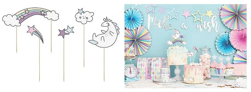 Grösse: 13-23.5 cmLieferumfang: 5 StückDie Perfekte Tortendekoration für deine Unicornparty!