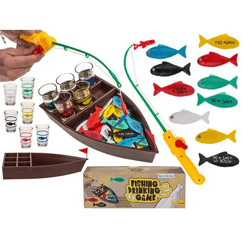 Trinkspiel, Fische angeln, mit 4 Shootergläsern,