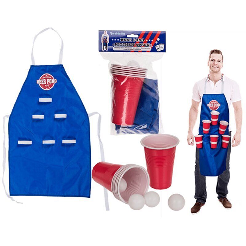 Küchenschürze, Beer Pong, ca. 80 x 50 cm, mit 4 Bällen & 6 Trinkbechern, für ca. 450 ml, im Polybeutel mit Headercard