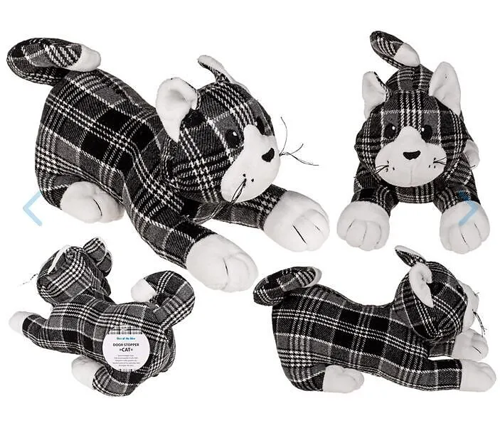 schwarz/grau/weiss kariert, ca. 28 cm Diese süsse Mieze als Tür- & Fenster-Stopper ist gleichzeitg ein dekorativer Blickfang in der Wohnung. ca. 1 kg