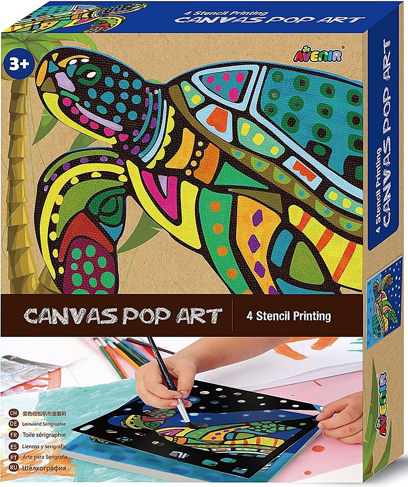 Bunte Kunstwerke entstehen durch Auflegen der Schablonen und anschließendem Ausmalen. Inhalt: 1 Leinwand (20x20cm), 4 Schablonen, 6 Farben, 4 Schablonenhalter, 1 Pinsel und Anleitung mit Abbildungen.