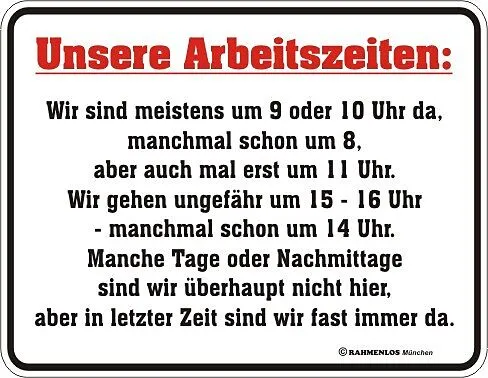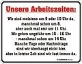 Unsere Arbeitszeiten. Blechschild im Format 17 x 22cm aus rostfreiem Aluminium.