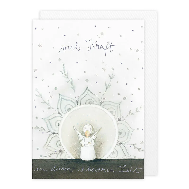 Viel Kraft in dieser schweren Zeit Doppelkarte mit Engel-Motiv