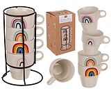 • Regenbogen-Tassen 4 Stck stapelbar im Metallständer,