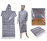 • Fouta Hamam grau/weisser Bademantel Grösse S,